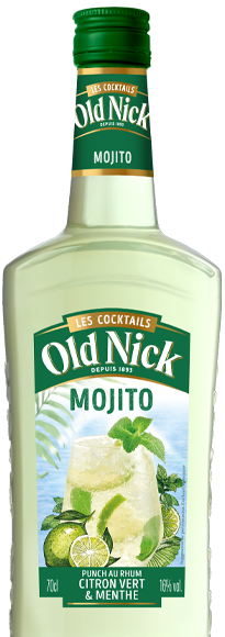 Le mojito est le cocktail le plus consommé en France ! Il est composé de rhum blanc, d’eau gazeuse, de citron vert et de feuilles de menthe. Directement inspiré de la recette originale, Old Nick Mojito associe la puissance du rhum blanc à l’acidité du citron vert, sans oublier la fraîcheur de la menthe.